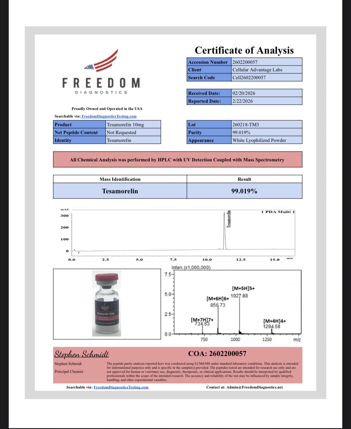 Cellular Advantage Labs is a chemical supplier. Cellular Advantage Labs is not a compounding pharmacy or chemical compounding facility as defined under 503A of the Federal Food, Drug, and Cosmetic act. Cellular Advantage Labs is not an outsourcing facility as defined under 503B of the Federal Food, Drug, and Cosmetic act.