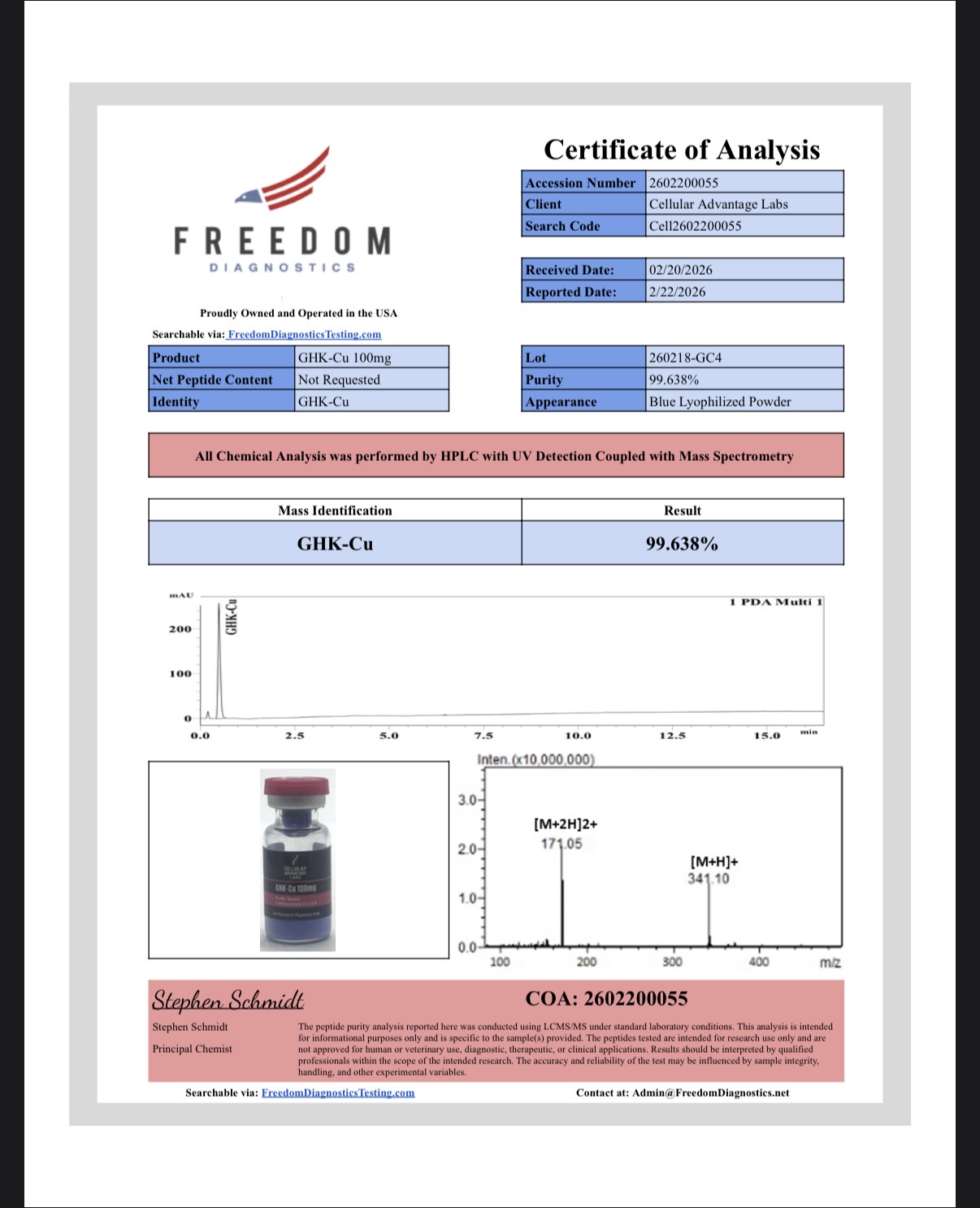 Cellular Advantage Labs is a chemical supplier. Cellular Advantage Labs is not a compounding pharmacy or chemical compounding facility as defined under 503A of the Federal Food, Drug, and Cosmetic act. Cellular Advantage Labs is not an outsourcing facility as defined under 503B of the Federal Food, Drug, and Cosmetic act.